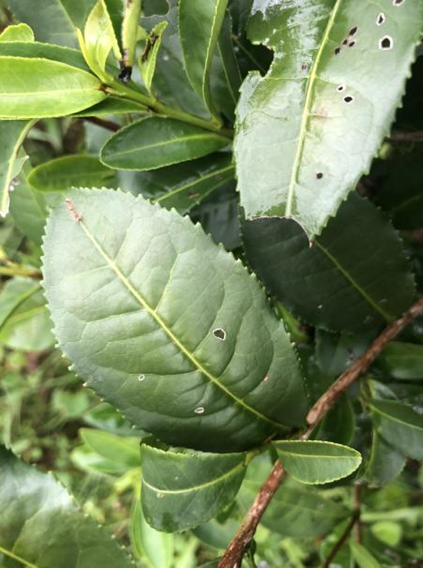 【性狀特征】白毫早茶樹(shù)品種為無(wú)性系。灌木型,中葉類,早生種。二倍體。樹(shù)姿半開(kāi)張,葉片稍上斜狀著生。葉長(zhǎng)橢圓形,葉色綠,葉身稍內(nèi)折,葉面平,葉尖漸尖。芽葉淡綠色,茸毛多,一芽三葉百芽重72.0g。花冠直徑2.9cm,花瓣6-8瓣,子房茸毛中等,花柱3裂。白毫早茶樹(shù)芽葉生育力強(qiáng),生長(zhǎng)速度快。春茶萌發(fā)期在3月上旬。產(chǎn)量高,5齡茶樹(shù)的生產(chǎn)適驗(yàn)茶園每畝可達(dá)420kg。