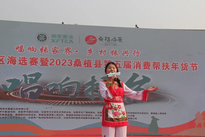 2023 年 1 月 10 日,湘豐茶業·桑植白茶《唱響擂臺》張家界賽區海選賽暨 2023 桑植縣第五屆消費幫扶年貨節活動在桑植縣民歌廣場隆重舉行?!冻懤夼_》是中國首檔定位音樂推介幸福的鄉村綜藝秀,本次活動由桑植縣 23個鄉鎮(每個鄉鎮推舉一位民間歌手代表)采取線下場地擂臺賽的方式,現場專業評委評判,呈現歌曲產品雙向賦能、推薦家鄉好物,打造幸福鄉村主題歌曲。讓桑植的歌聲越過大山,讓更多人聽到!