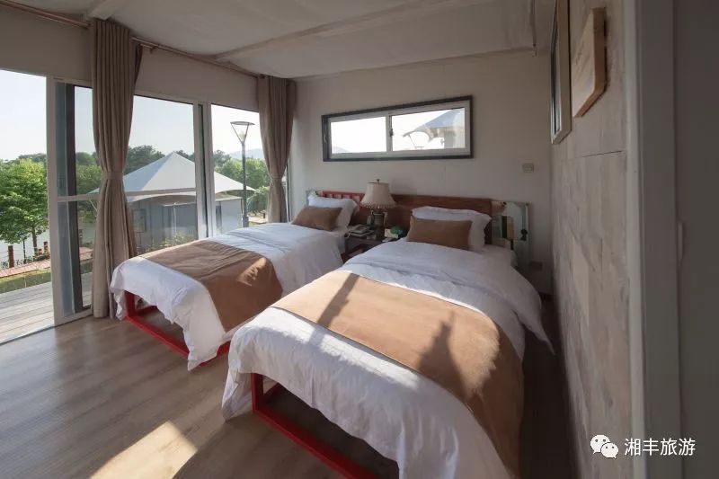 湘豐帳篷酒店位于長沙縣金井鎮湘豐茶業莊園內,通體白色,零星鑲嵌于綠色的茶海之中仿佛即將遠航的帆船,非常雅致、生態,真正做到了觀星賞湖品茶香的美好旅游體驗。每個帳篷都有其獨立的污水循環處理系統,不會對茶園生態產生負面影響,酒店內住宿洗浴設備一應俱全,自對外開放以來受到游客們的熱捧。