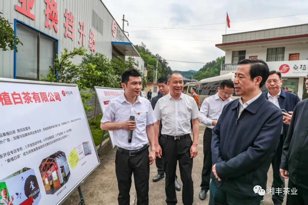 5月9日上午,湖南省委副書記、省長許達哲一行來到位于桑植縣的湖南湘豐桑植白茶公司走訪調研。省政府秘書長王群,張家界市委書記虢正貴,張家界市委副書記、市長劉革安,張家界市政協副主席、桑植縣委書記劉衛兵,桑植縣委副書記、縣長趙云海,桑植縣人民政府副縣長張帆等參與調研。湘豐茶業集團董事長湯宇及高管張超、李中欽等現場陪同接待。