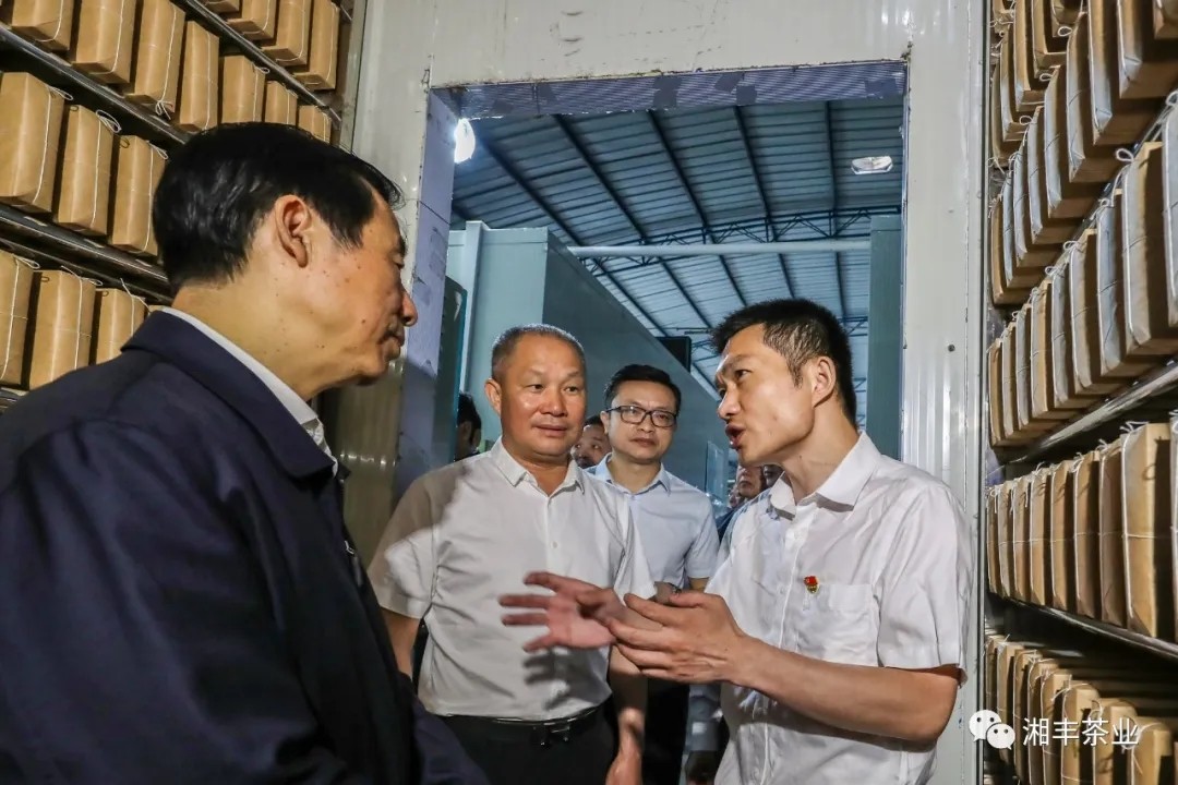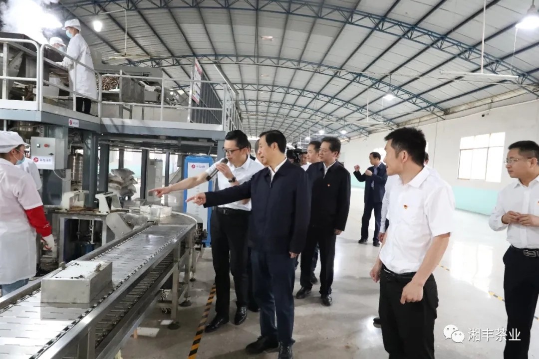 在參觀了湘豐桑植白茶公司白茶壓制、檢測及烘干等生產線后,省長等一行來到一樓湘豐茶業集團文化和產品展覽室,品鑒桑植白茶、觀看湘豐茶業集團介紹短片、交流茶業產業發展的相關問題。省長對湘豐茶業集團致力于桑植白茶產業發展、帶動一方農戶脫貧致富的經營理念和實踐表示贊賞,并勉勵公司做優做強,完善同村集體、農戶的利益聯結機制,實現多方參與、多方共贏。湯宇董事長表示:感謝省長的肯定和鼓勵!湘豐茶業集團根植于農業,興盛于農業,服務于三農,一定會在實現自身強大的同時,踐行社會責任!